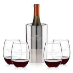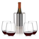 Elevate any pour with the Catania Wine Cooler & Wine Set, featuring a sleek, polished stainless steel cooler that keeps your favorite bottle perfectly chilled alongside elegant wine glasses for a refined table moment. The cooler’s modern silhouette delivers standout style from countertop to patio, while the crystal-clear glasses balance comfort and sophistication for reds, whites, or rosés. Available with a variety of stemmed and stemless wine glass options, this set makes an effortlessly versatile gift—or a timeless upgrade to your own barware.
