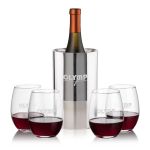 Elevate any pour with the Catania Wine Cooler & Wine Set, featuring a sleek, polished stainless steel cooler that keeps your favorite bottle perfectly chilled alongside elegant wine glasses for a refined table moment. The cooler’s modern silhouette delivers standout style from countertop to patio, while the crystal-clear glasses balance comfort and sophistication for reds, whites, or rosés. Available with a variety of stemmed and stemless wine glass options, this set makes an effortlessly versatile gift—or a timeless upgrade to your own barware.