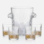 24% Lead CrystalBeautifully cut suite with a spacious engraving area on the front. A must have item for any great party host, this crystal ice bucket with light reflecting cut outs and curved handles is a statement piece that would be treasured by any one who received it.Available in three sizes, or as a set with OTR matching glasses. 8.0″ H