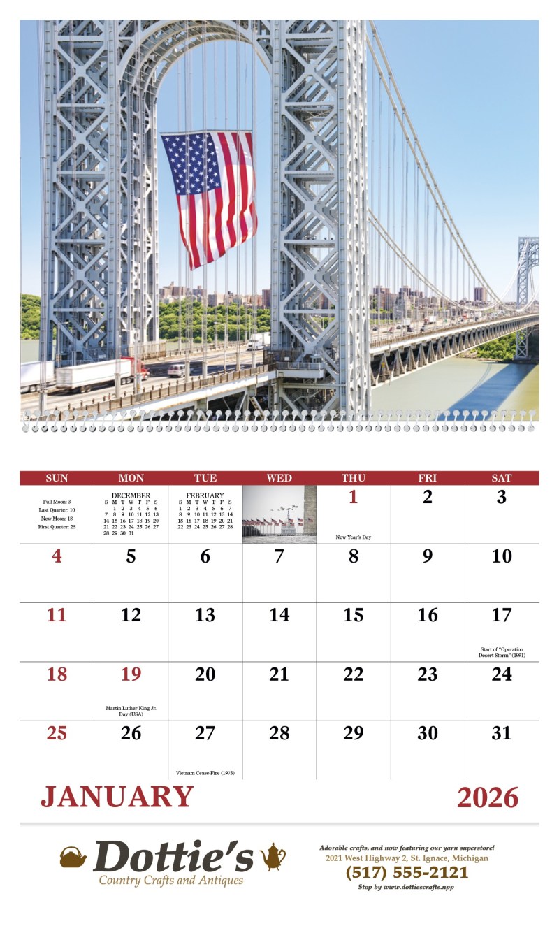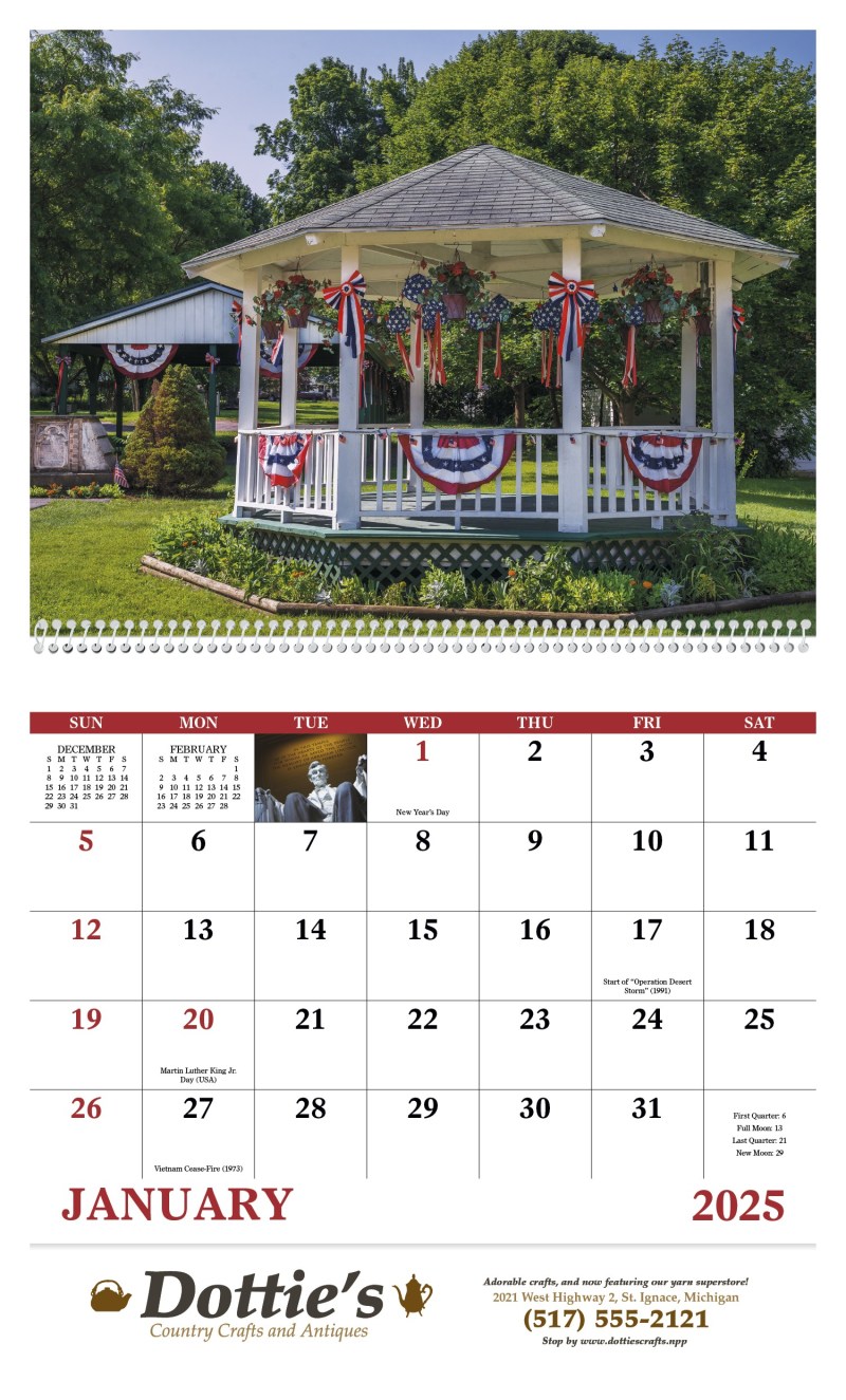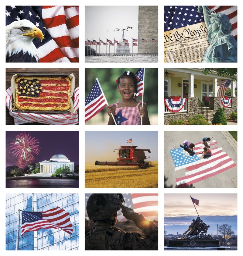 Showcase your love of country with this 13-month calendar that celebrates the American spirit. The FSC® label means that the materials used for this product come from well-managed FSC®-certified forests and other controlled sources.