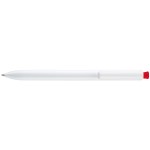 This retractable style pen is a one-piece, bright white barrel with see-through colored pusher. Push the clip to retract the tip and includes medium point and super smooth writing ink. This reliable ballpoint pen is designed for smooth, consistent writing with easy refill capability to extend its life. Featuring a sturdy barrel, comfortable grip, and convenient pocket clip, it s perfect for daily use at home, in the office, or on the go. The plunger action and quick click mechanism make it easy to deploy and retract the pen with one hand. Practical and stylish, this writing instrument is an essential tool for jotting notes, signing documents, or creative writing whenever inspiration strikes! Additional optional screen print location is 2″ x ¾” inline with clip. Complies with Prop 65. 5″ L x 0.4″ W x 0.6″ H
