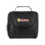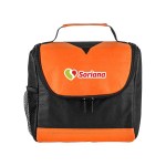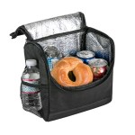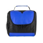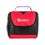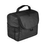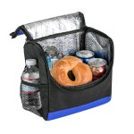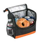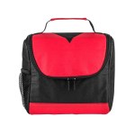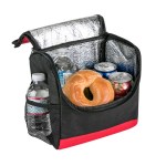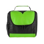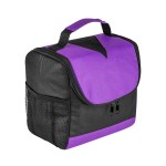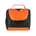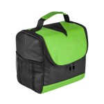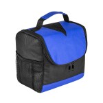 Bold color 80GSM Non-Woven polypropylene lunch cooler bag with foil lining. Includes black accents; side mesh pocket; sturdy top handle; and full-zipper pulls. 6″ D x 8″ H x 8″ W