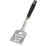 Features a bottle opener and serrated edge for tenderizing and cutting meat Constructed from heavy duty Stainless Steel with a non-slip plastic handle. 1.25″ D x 3.5″ W x 17.125″ H