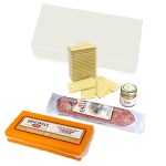 Epicurean Delight Features Dry Cured Salami, Cheese, Crackers And Gourmet Mustard in Fully Customizable Gift Box. Price Includes 4 Color Process Lid. Gourmet Food Items Sold As Shown.. Complies with Prop 65. 8″ W x 2″ H x 4″ D