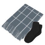 Set Includes #7011 Charleston Fringed Throw Blanket And #15004 Fuzzy Socks. Price Includes 1-Location Embroidery On Each Item. Complies with Prop 65. 72″ W x 54″ H
