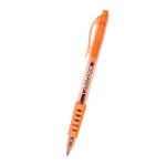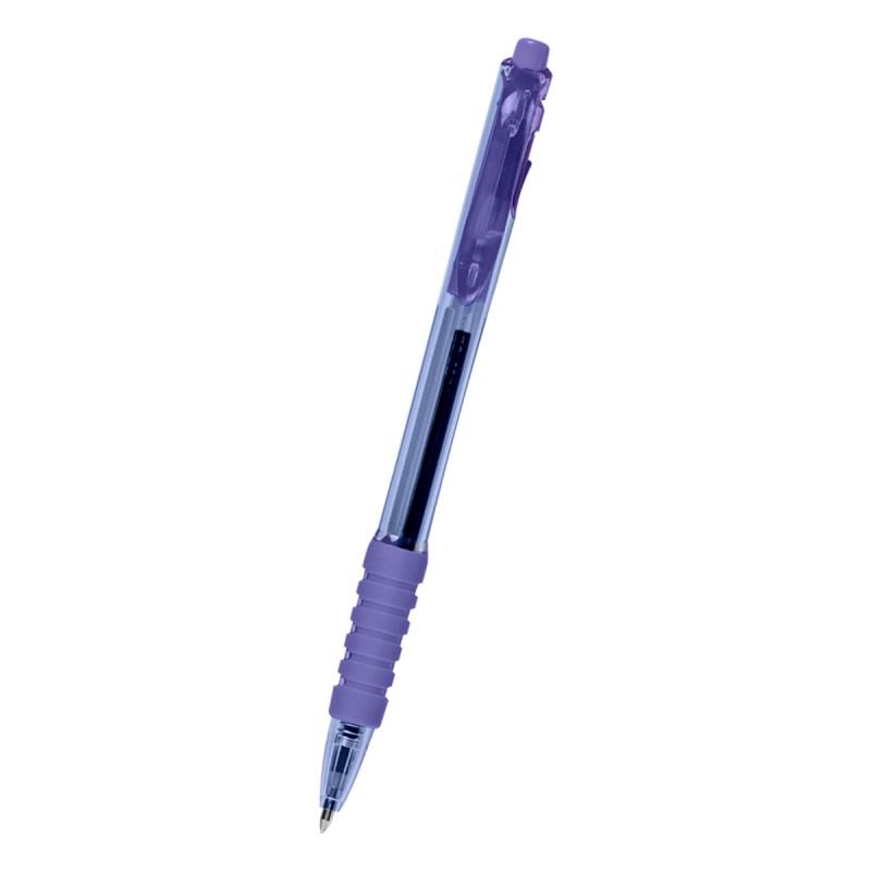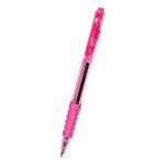 Plunger Action. Rubber Grip For Writing Comfort And Control. Pen Retracts With Side Slide Button. Complies with Prop 65. 5.5″ H