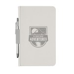 Catch your notes with the Chelsea notebook! The perfect notebook for the office or when you are on the go. Exclusively in white, this 80 sheet lined journal includes a grey-colored pen strap and coordinating stylus black-ink ballpoint pen. 8.25″ H x 5.125″ W