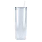The Chroma Recycled Acrylic Straw Tumbler 16oz is an on-trend and eco-friendly option at an amazing value. Made from 100% recycled SAN and includes a 100% recycled PP straw which is notched to help prevent the straw from getting lost. Features double wall construction to reduce condensation and help prevent drips onto tables and countertops. This acrylic tumbler is perfect for traveling, the outdoors, and at home. Hand wash only. 16oz. 2.87″ D x 2.87″ W x 9.37″ H