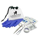 Brightly colored polyester drawstring bag compact and excellent for trade show giveaways Contains pet care essentials. Complies with ANSI, CPSIA, Prop 65. 5″ W x 5″ H