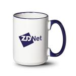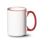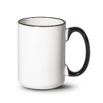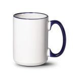 The Clancy ceramic mug, glazed in white, features a colorfulhandle and rim to start your day with a satisfying beginning.
