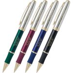 Traditional Engraved Metal Pen in Classic Style with the Clarkson™ Pen! Custom engraved and professional full-weight metal pen with professional appeal ensures you will be remembered. Chrome upper barrel with gold tone accents give just the right touch of class. Comfort grip matches barrel color in classic color selection. Twist action closure keeps this pen true to form as a classic professional style pen. Elegantly presented in an executive gift box. Complies with Prop 65.