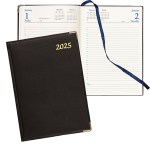 Stay organized and stylish with the Classic Diary Weekly Appointment Planner. This Smyth sewn planner features gold edged pages, a marker ribbon, and metal corners for added durability. The planner also includes a political world map, domestic area codes, and international dialing codes for easy reference. Additionally, the planner offers interest and discount tables for financial planning. The durable padded leather-like cover gives a professional look while protecting your important scheduling information. Whether you’re a busy professional or a student, this planner is a must-have for keeping track of appointments and deadlines in style. 5 1/2″ W x 8 1/2″ H
