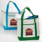 Create a high quality, eco-friendly marketing piece when you custom imprint your logo on the Zippered Bag! Durable straps & bag construction. Zippered main compartment for more secure keeping of your contents. Large outer pocket. Embroidered Imprint. Complies with Prop 65. 13.5″ H x 17″ W x 5″ D