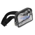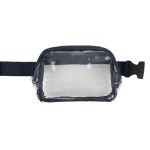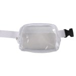 Clear over the shoulder bag features two zipper pockets and constructed of clear 0.2mm PVC and webbed strap. 6″ H x 8″ W x 2″ D