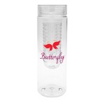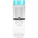 Introducing our eco-friendly 24 oz. refillable water bottle made from recycled materials, complete with an infuser for adding your favorite fruits or herbs. This sleek bottle can hold 20-22 oz. of liquid with the infuser installed and comes with a convenient clear view flat top lid for easy sipping on the go. Rest assured, this BPA-free bottle is designed for your health and the environment. Please note, this bottle is not suitable for dishwasher or microwave use to ensure its longevity and performance. Complies with FDA, Prop 65. 2.75″ D x 9.5″ H