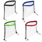 This Clear Bag with Drawstring is contructed of heavy gauge clear vinyl, has a drawstring closure, and meets stadium security requirements. Complies with Prop 65. 12″ W x 12″ H