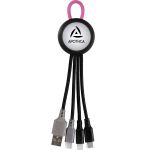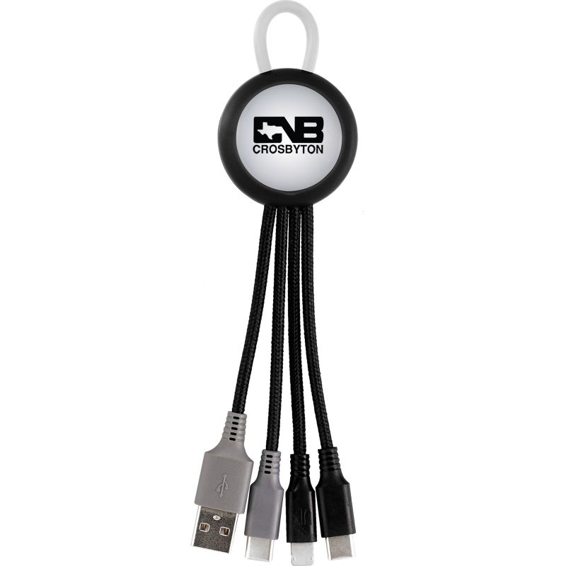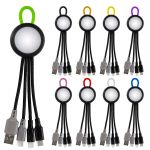 Light Up 3-in-1 charging cable; Multiple USB adaptor. C to C compatibility. Compatible with 8-pin devices, Micro USB, Type C USB. Full color imprint available. No Rush Available for Full color imprint. Complies with CE, Prop 65. 1.5″ L x 6.75″ H