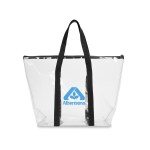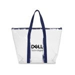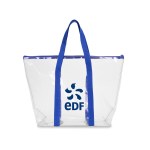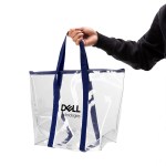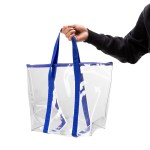 Spacious and modern, the ClearVue EVA Zipper Tote features a transparent EVA body for easy visibility, a durable polypropylene handle, and a secure nylon zipper closure. Measuring20″x13″x7″, it’s perfect for events, travel, or daily errands where style and function meet clarity.