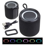 The Cobalt Light-Up Wireless Speaker is a 5W IPX6 waterproof wireless speaker and a rainbow color show with the 7-Color changing LED lights. Enjoy 4 hours of playing time at maximum volume, with a connection range of 33 feet, and recharge in 2 hours. This speaker is protected against splashes from all directions, but not from submersion in water. The built-in Li-lon battery has a capacity of 1200mAh, in ABS casing, and includes a USB Type-C charging cable and carabiner. FCC certified. Complies with OU, Prop 65, UN38.3. 3.75″ H x 3.625″ Diameter