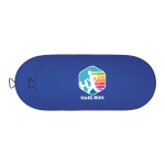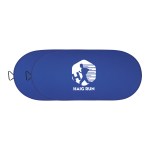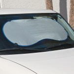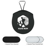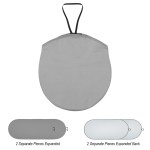 Made of Nylon, Silver Coated Material. 2 Separate Shades, Each With Elastic Strap For Secure Storage. Matching Pouch. Complies with Prop 65. 19.75″ H
