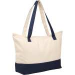 The Color Accent Tote is a versatile carryall designed with style and function in mind. Featuring bold contrast trim and matching handles, this tote brings a fresh pop of color to a classic silhouette. The zippered main compartment provides plenty of room for everything from beach towels to groceries, while the long shoulder straps make it easy to carry wherever the day takes you. A timeless go-to bag with a modern color-blocked finish. Through a partnership with 1% For The Planet, a portion of. 5.00″ D x 21.75″ W x 14.25″ H