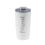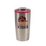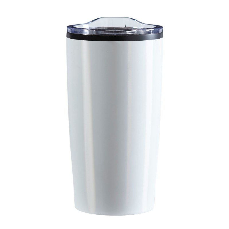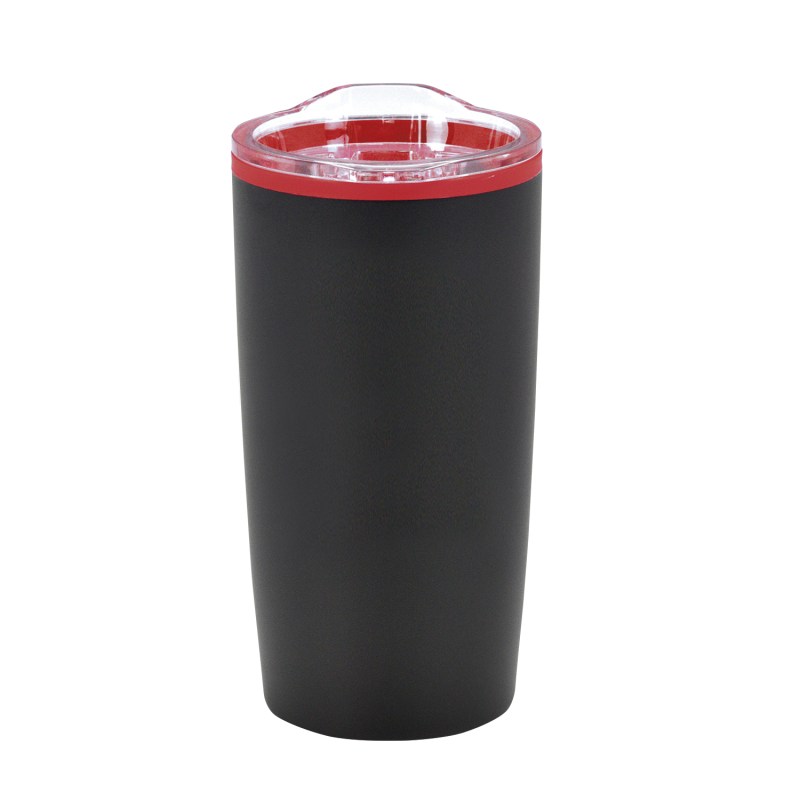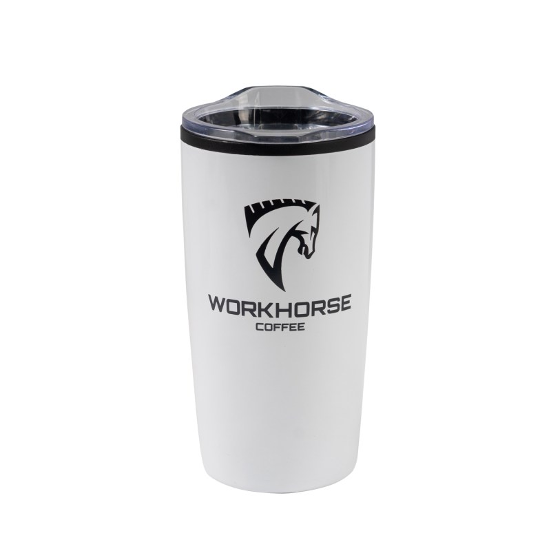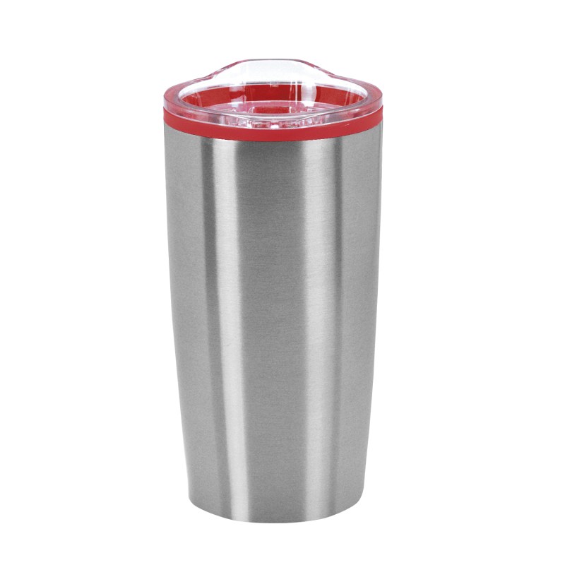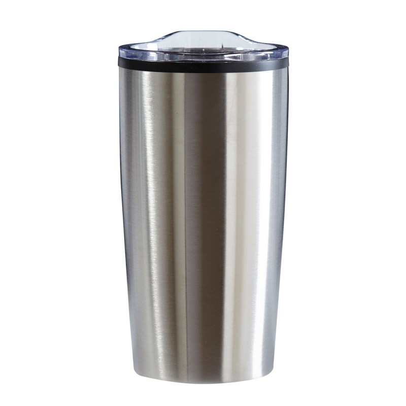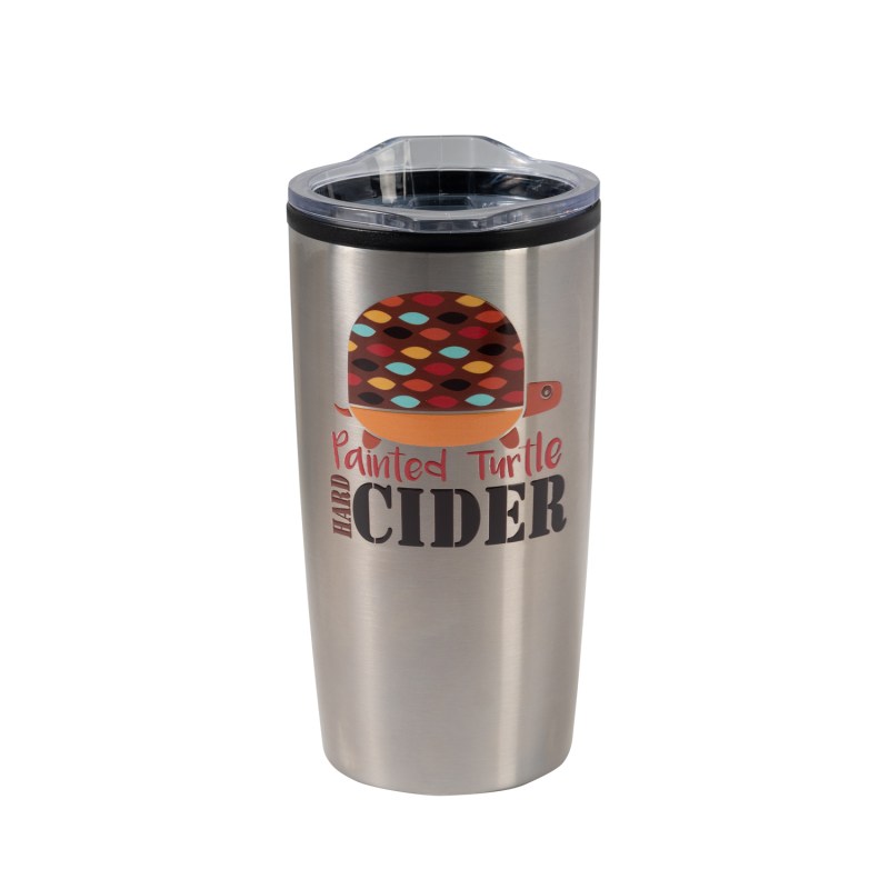 The Economy 20 oz. Tumbler features a stainless-steel, double wall outer shell with a plastic liner and a non-slip base. The snap on, clear lid with slide closure sports a rubber seal for a secure fit. 3.5″ W x 6.75″ H x 3.5″ D