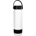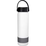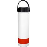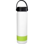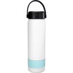 Elevate your hydration game with our sleek and stylish refillable 24 oz. double wall stainless steel bottle, complete with a vibrant silicone band for a pop of color. The metal ring top features an easy carry handle, making it convenient to take on the go. Rest assured, our bottle is BPA free for your peace of mind. Please note that this bottle is not recommended for dishwasher or microwave use, ensuring its longevity and performance. Choose quality, choose style – choose our refillable stainless steel bottle. Complies with FDA, Prop 65. 2.75″ D x 10″ H