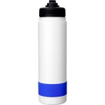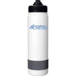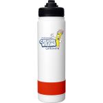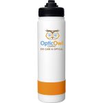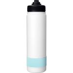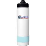 Introducing our stylish and durable refillable 24 oz. double wall stainless steel bottle, complete with a vibrant silicone band for added flair. The convenient pop-up straw lid also features a matching silicone band for a cohesive look. Rest assured, our bottle is BPA free for your peace of mind. Please note, this product is not recommended for use in the dishwasher or microwave for optimal longevity. Elevate your hydration game with this sleek and practical bottle today! Complies with FDA, Prop 65. 2.75″ D x 10.25″ H
