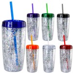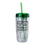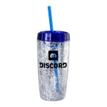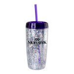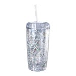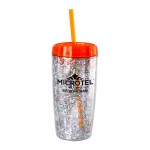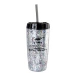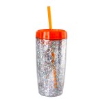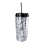 Elevate your beverage experience with our 16oz. insulated tumbler, featuring a fun confetti design sealed between the walls for a unique and eye-catching look. This tumbler comes complete with a matching lid and straw, making it not only stylish but also convenient for on-the-go use. While it is not suitable for use in the dishwasher or microwave, rest assured that this tumbler is BPA Free, ensuring your drinks are safe and free from harmful chemicals. Add a touch of flair to your daily routine with this trendy and practical tumbler. Complies with FDA, Prop 65. 3.5″ D x 6″ H