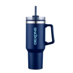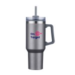 Whether you are commuting to work or heading to the gym, the Connor 40 oz. Travel Mug is the ultimate companion and the ideal choice to keep you hydrated and refreshed throughout your journey. The mug has a double wall construction with stainless steel outer wall and polypropylene inner wall providing convenient portability and durability. With the included reusable straw, you can effortlessly sip your cool drinks on the move without the need to remove the lid or worry about spills. The mug has a rotator lid closure and provides a lightweight and sleek design that fits into standard car cup holders and its ergonomic handle makes it easy to bring with you. FDA compliant and BPA Free. Complies with Prop 65. 5 7/8″ W x 10 3/4″ H x 4″ D