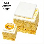 Twelve handmade marshmallow crispy rice treats topped with custom fondant logos, perfect for showcasing your brand at events. Freshly made in small batches with customizable flavors and sprinkles for a premium, branded presentation.