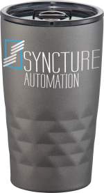 Part of our Bold Geometry trend collection this style is defined by angles that create a great tactile and visual experience. Double-wall vacuum construction with copper insulation. Keeps drinks hot for 8 hours and cold for 24 hours. The construction also prevents condensation on the outside of the tumbler. Compact design fits easily under most single cup or K-cup coffee makers as well as in all standard cup holders. Easy sipping, push-on lid with slide closure. Wide opening for comfortable filling and pouring. Leed’s Exclusive. 14oz. 3.50″ D x 3.50″ W x 5.90″ H