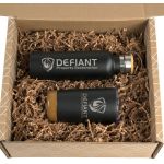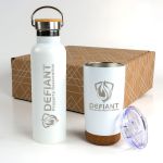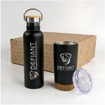 This Trendy Eco Conscious Drinkware Gift Set will be Enjoyed by all Who Receive it! Each kit is packaged individually in an attractive patterned craft mailer with craft crinkle paper for filler. Add your custom message or logo to each item in the kit. Each set includes a 20 oz. Spirit Powder Coated Stainless Water Bottle and an 18 oz. Saratoga Cork Bottom Stainless Tumbler. Perfect to give to new staff, team members, students or clients. Complies with Prop 65.