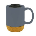 14 oz. Cork Mug features a matte finish, spill-resistant lid and cork base. 4.25″ H