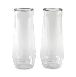 Raise a toast with the CORKCICLE(R) Flute Glass Set. These stemless flutes feature a sleek double-walled design to keep drinks crisp without condensation. Flat sides add comfort and modern flair, all packaged in a beautiful gift box. Dishwasher safe and PVC Free. Complies with CPSIA, Prop 65. 2.6″ W x 6.5″ H x 2.6″ L