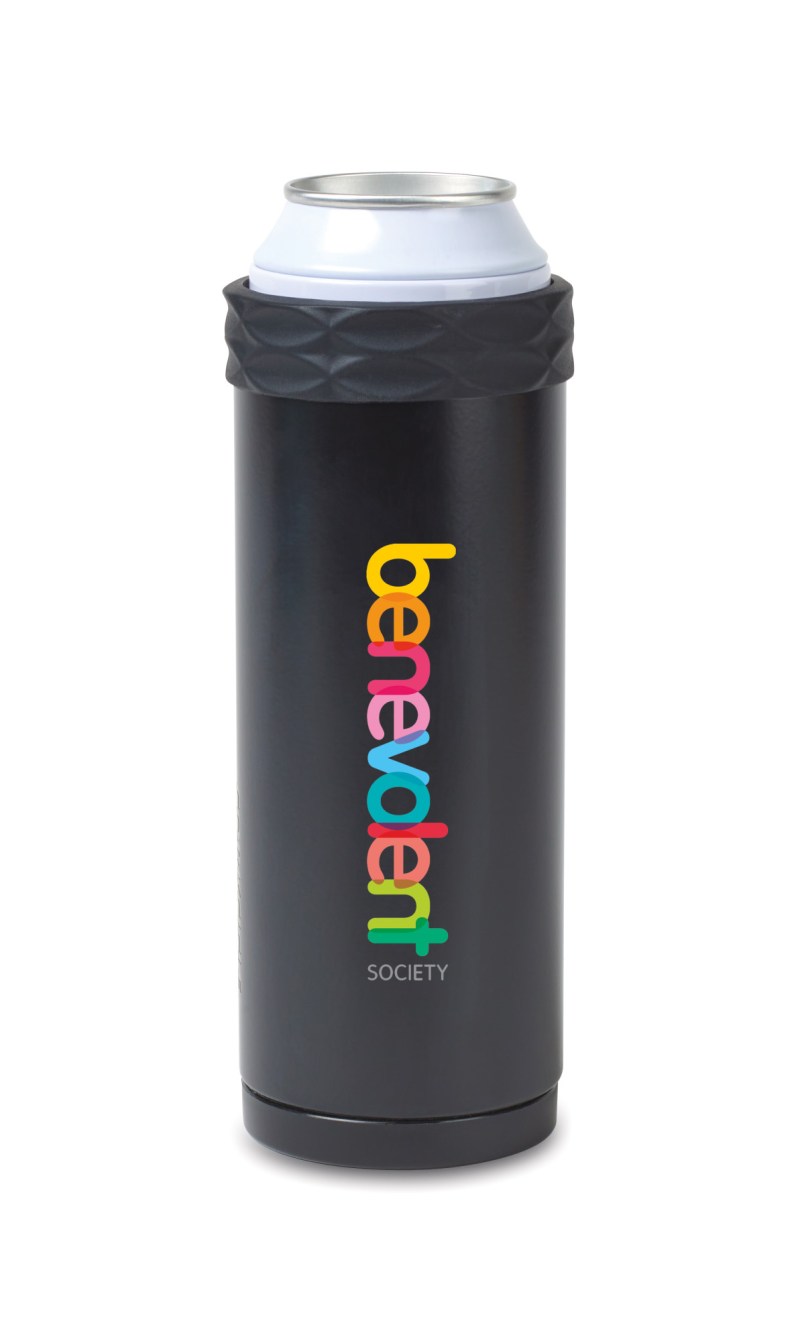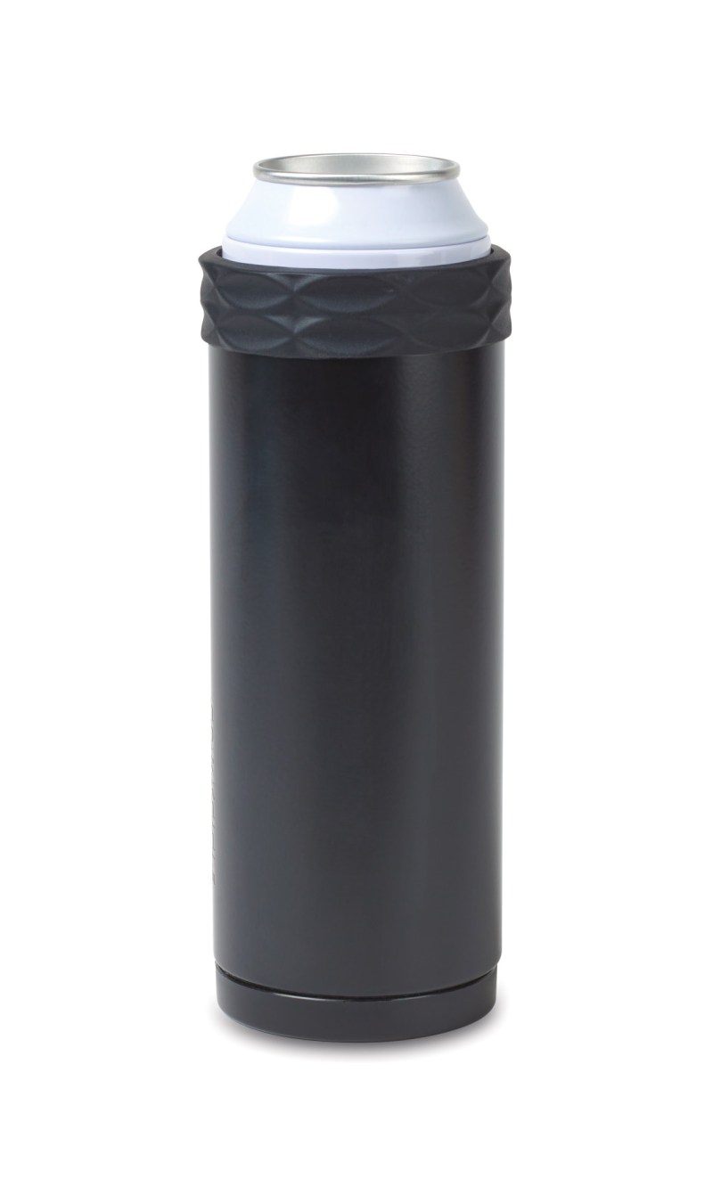 Get Slim for summer. Slim Arctican, that is. Slim Arctican keeps cold cans cold for up to 3 hours. Simply freeze the cooling core base, twist it on, drop in a cold beverage and enjoy ice cold drinks for up to three hours. Includes sleeve adapter and easy-slide spacer to fit 8.4 ounce cans. Elongated to fit your favorite seltzers, specialty beers, and other beverages. Complies with CPSIA, Prop 65. 3″ W x 7.5″ H x 8″ L