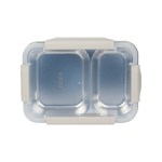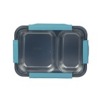 Take the Corrine reusable food container to work, a picnic, camping or the beach to keep your food fresh and safe. It features a 2-compartment food-grade stainless steel tray for packing various foods, snacks, fruits or salad. The food storage container has 4 side locks and a silicone ring seal making it leak-proof while the steel tray is inserted, preventing spills during transit. The Corrine is leak-resistant when used without the steel tray. Its large plastic compartment can hold 32 oz. of food and is microwavable, top rack dishwasher safe, FDA compliant and BPA Free. Complies with Prop 65. 9″ W x 2 7/8″ H x 6 3/8″ D