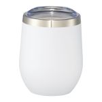 Enjoy your favorite beverage anywhere with the Corzo Copper Vacuum Insulated Cup 12 Oz. It features durable, double-wall stainless steel construction and copper vacuum insulation, ensuring your beverage stays cold for up to 24 hours or hot for up to 6 hours. The construction also has a powder coating that prevents condensation on the outside of the cup. With a push-on lid and wide opening designed for comfortable filling and pouring, this Corzo cup is an ideal accessory for wine and other beverages. 4.63″ H x 3.50″ W x 3.50″ D