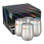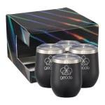 The Corzo Cup 12oz 4″ 1 Gift Set includes four of our popular Corzo Copper Vacuum Insulated Cup 12oz (1625-53). Each item features durable, double-wall stainless steel construction with copper vacuum insulation, keeping your beverage cold for up to 24 hours or hot for up to 6 hours. Trendy powder coating prevents exterior condensation, providing a comfortable no-slip grip. This four-piece set comes in a holographic gift box. 4.85″ H x 7.15″ W x 7.15″ D Gift meaningful gifts with this Perfectly Packaged Gift Set! Packed with our best selling items, this gift sets is perfect for new hires, executives, wellness initiatives and much more. Setup fee includes a one color, one location imprint on each item.
