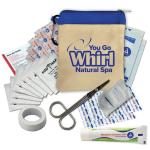 Premium Travel Kit Cotton Zip Tote kit with Carabiner. Complies with ANSI, CPSIA, Prop 65. 6″ H x 5″ W