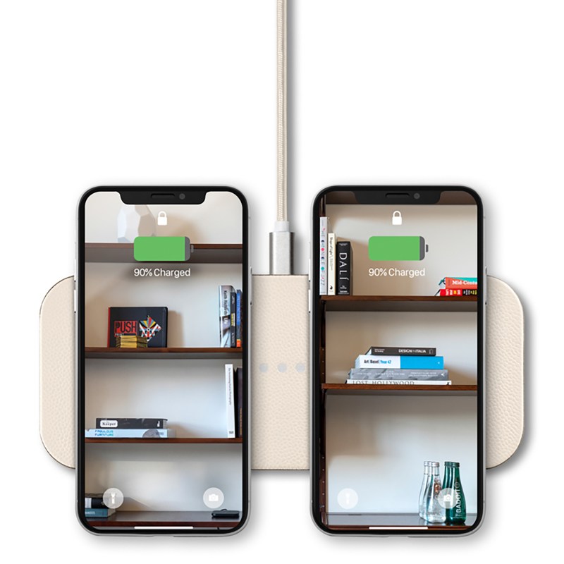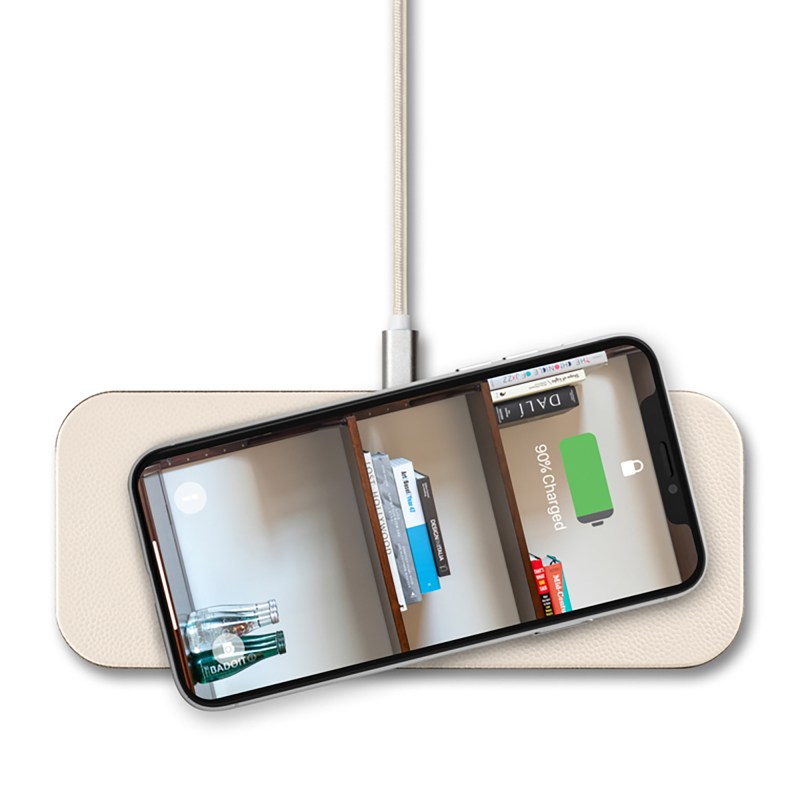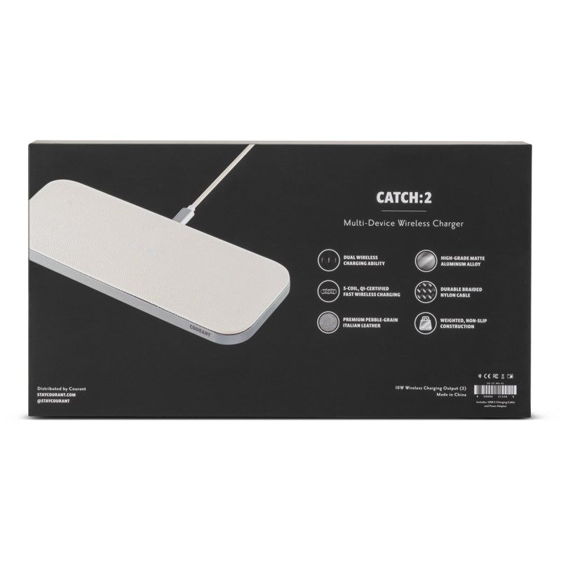 Wrapped in quality materials like leather and aluminum alloy, the CATCH:2’s 5-coil array allows effortless multi-device charging without frustrating “dead zones,” and effortlessly blends in wherever it’s placed. This charger works best in spaces where two people can share-like living rooms-or in an office to power up your phone and earbuds all at once. Wirelessly charge up to two devices at once. Up to 10W wireless output (2). Qi certified. Durable braided nylon USB C Charging Cable (included). Complies with CPSIA, Prop 65. 3.1″ W x 0.6″ H x 7.8″ L