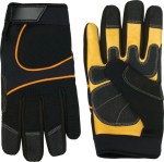 Cow Grain Leather palms with a textured grip PVC palm panel. Breathable Spandex finger side panels. Includes reinforced fingers and thumb crotch. Spandex back and Elastic cuff with a hook and loop secured closure. 9.5″ D x 4.5″ W x 0.25″ H