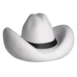 Cowboy Hat Shaped Polyurethane Stress Reliever. White stress relievers may discolor over time. Please store them in their plastic bags away from direct sunlight and distribute within 3 months. Complies with ASTM, CCPSA, CPSIA, Prop 65. 3.25″ L x 2.5″ W x 2″ H