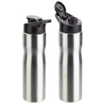 Crescent is 25 oz single-wall stainless steel bottle with flip top opening and handle built into the lid. BPA free and FDA certified. Offers laser engraving, full-color digital (wraps available), or screenprinting. Complies with FDA, Prop 65. 10″ H x 2.625″ Diameter