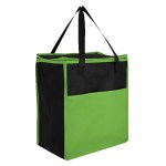 Stay cool and carry with confidence with the Crystal Cove Recycled Grocery Cooler. Crafted from color-blocked recycled 80gsm non-woven material, this roomy bag combines style with sustainability. Its foil-lined insulation and top zipper closure lock in the chill, while a handy front slip pocket keeps essentials within easy reach. Designed with sturdy handles for grab-and-go convenience and a generous 60-can capacity, it’s the perfect partner for shopping, picnics, or any adventure that calls for eco-friendly cooling power. 13″ W x 15.25″ H x 9.5″ D