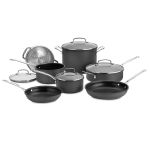 The Cuisinart Chef’s Classic Nonstick Hard Anodized 11-Piece Set includes all the tools you need to perform virtually any cooking task. The hard anodized exterior is harder than stainless steel -dense, nonporous, and highly wear-resistant for extra durability and professional performance. The PURELYCERAMIC Nonstick Interior cooking surface provides long lasting food release. No oil or butter needed for healthier low-fat cooking options, and easy cleanup.