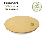 The Cuisinart Outdoors(R) 3 Piece Pizza Grill Set makes it easy to create crisp, grill-fired pizza in your own backyard. The set includes a 13″ pizza stone for even baking, a folding stainless steel pizza peel for easy handling, and a sharp pizza cutter for quick slicing. With the stone heated and ready in just 15 minutes, you’ll be serving up professional-style pizzas in no time. Packaged in a Cuisinart box. Complies with CPSIA, Prop 65. 13″ W x 2″ H x 13″ L