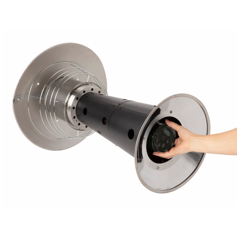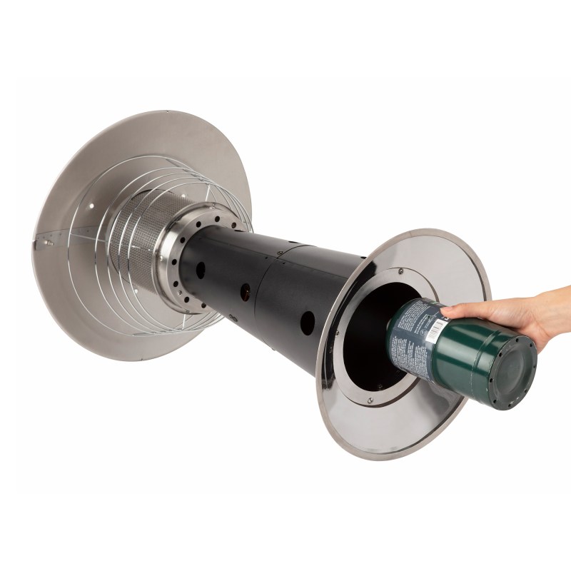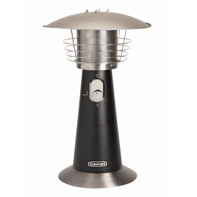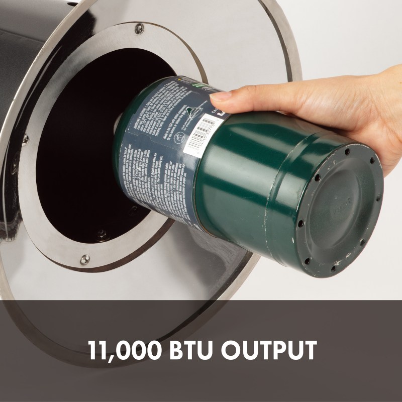 Place in the center of a patio table for warmth while you dine with friends and family. It is portable and is perfect for camping and tailgating. With a 11,000 BTU output, this heater is small but mighty and will heat up an area of about 30 sq. ft. There is a built-in anti-tilt automatic shut off technology will shut the unit off if it is tipped over. Another safety feature is the burner screen guard, keeping you safe from the heating element itself. Complies with CPSIA, Prop 65. 16″ W x 16″ L