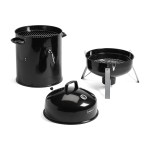 The Cuisinart(R) Vertical 16″ Charcoal Smoker was built to last. The three year warranty adds confidence to the durable framework and porcelain enamel water bowl. With two 16″ solid steel cooking grates, this smoker can accommodate just about any food you’re looking to smoke at the house. Working a charcoal smoker is as simple as lighting the charcoal, filling up the water bowl, and then casually adjusting the air vents to control the temperature. Complies with CPSIA, Prop 65. 16.90″ W x 15.70″ H x 16.90″ L
