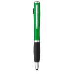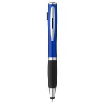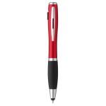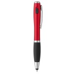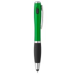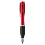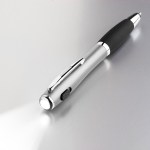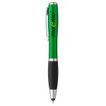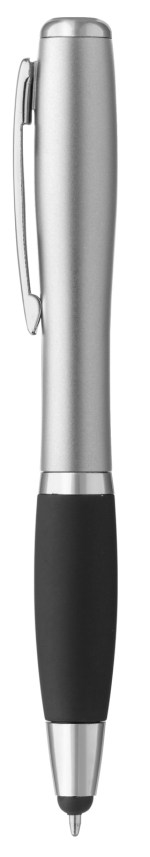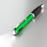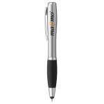 Everyone’s favorite curvaceous ballpoint stylus pen; now with a bright LED flashlight tip! Rich jewel tone color barrel; shiny silver accents; rubber grip and soft cushion capacitive tip stylus designed to mimic your finger and keep your touchscreen fingerprint free! Black ballpoint ink. 5.125″ D x 0.5625″ W